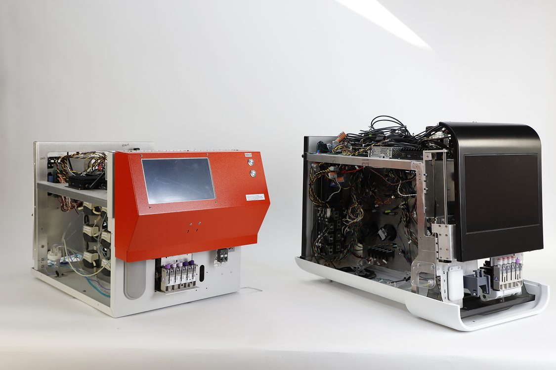 After learning from research that reducing width was critical, we remapped the internal structure, adjusting for new automation requirements while ensuring the outer aesthetics weren’t sacrificed. By consolidating boards and wiring, we even opened up space for internal reagents. The result was a simplified interior, making it easier for engineers and service techs to service the device.