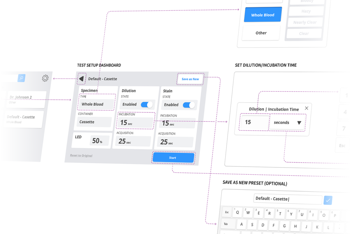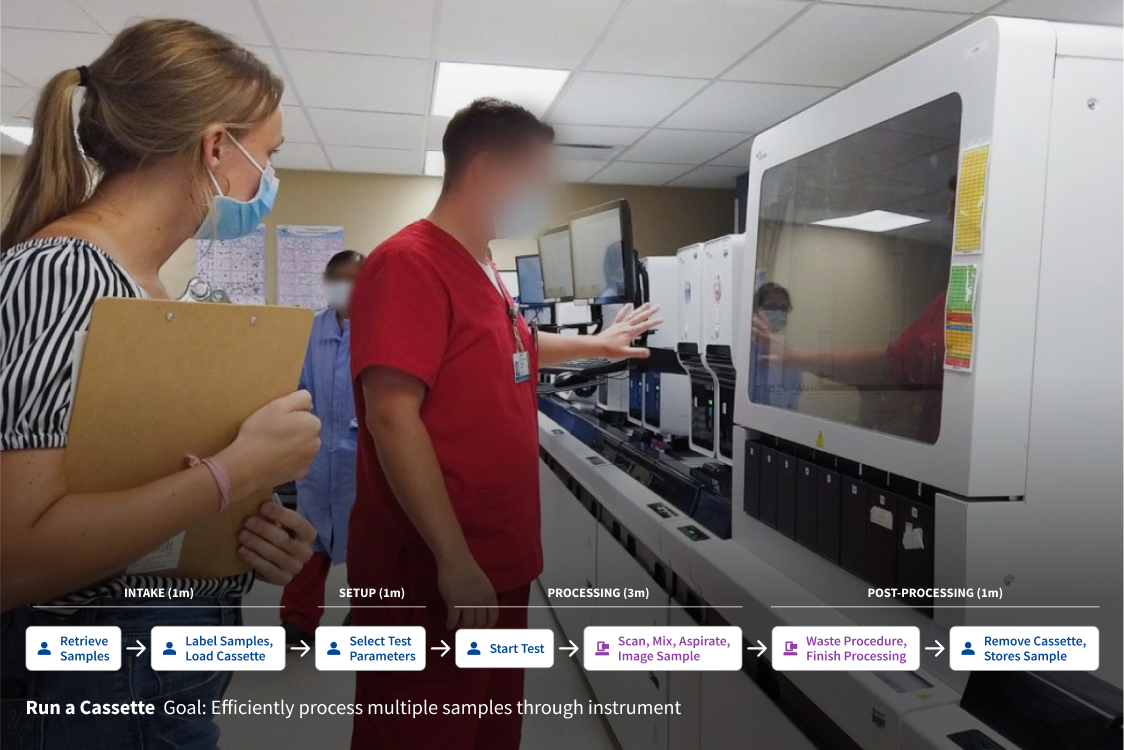 We built on our prior research of hematology lab workflows, competitive device audits, and the functional requirements of the RUO to align the RUO’s capabilities with clinical users’ objectives.