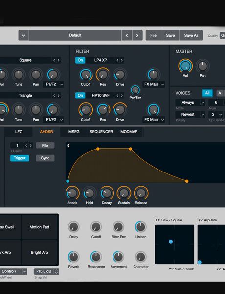 Another alarm family focused on the strong, engineered quality of product and its experience, with the soft, human qualities playing more of a background role. This family utilized detuned notes—for a wider, fuller frequency presence—layered with a strong percussive sound to create a confident and hard pulse timbre. However, to maintain some of the softness of the ABL, the notes featured medium releases, a touch of reverb, and a subtle amplitude modulation effect (tremolo).